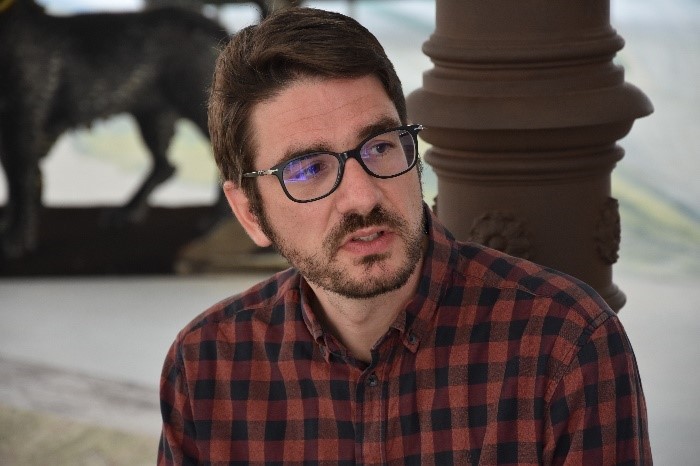 Researcher, Texter, Projektleiter, Moderator, Kurator – einfach gesagt: Roman Wild ist der versierte Generalist des Textilmuseums St. Gallen. Er ist der Allrounder, der Mann, den man für alles einsetzen kann. Und das gefällt ihm. Bei Roman Wild laufen verschiedene Fäden zusammen. Es ist seine Aufgabe, die Forderungen der Auftraggebenden, des Museums und der Besuchenden zu berücksichtigen und diese in die Planung einer Ausstellung einfliessen zu lassen.